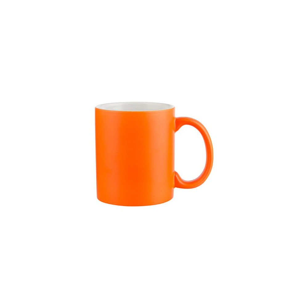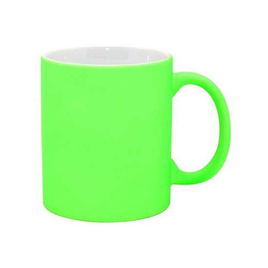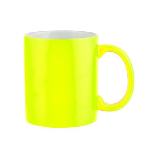Fluorescenta krāsu krūze - rozā, matēta, ar poliestera pārklājumu sublimācijas un termopārneses drukāšanai. Pieejama vienreizējās lietošanas iepakojumā.