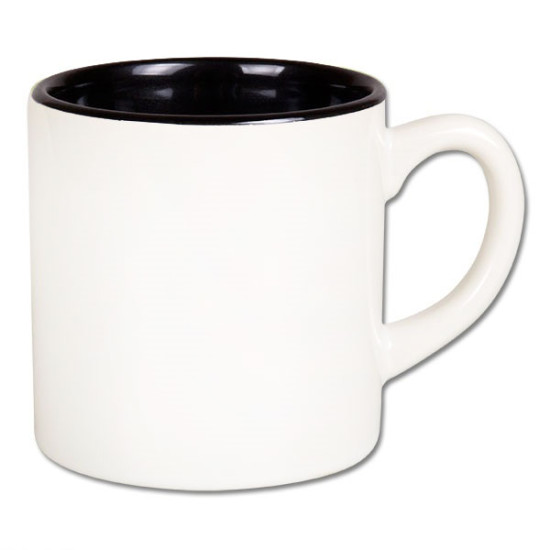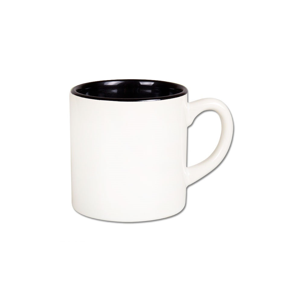 Balta mini sublimācijas krūze ar melnu iekšpusi pieskaņotā kastītē